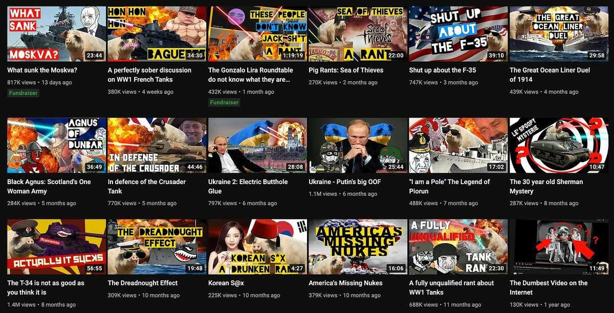 LazerPig started uploading videos to YouTube in November 2020. That first video has 224K views now and the video is about the first (and second) tank in existence. LazerPig shouldn’t be as popular as he is just based on the content type but he is and he has a rabid community of fans from YouTube to his Discord.