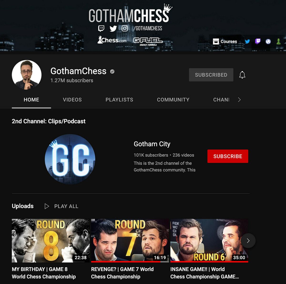 In 2018, he’d start his channel, GothamChess, named after the city he grew up in, New York City (often referred to as Gotham in Batman or sometimes even colloquially.)